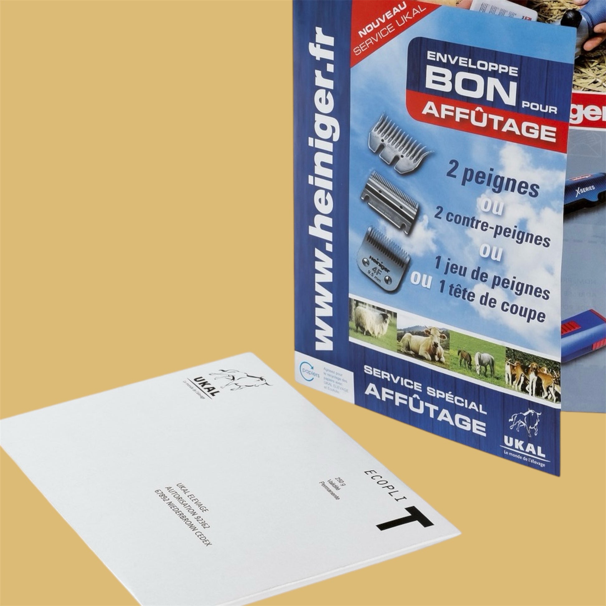 Enveloppe prépayée pour un bon d’affûtage qui consiste à glisser un jeu de peigne ou 2 peignes ou 2 contre-peignes ou une tête de coupe.
