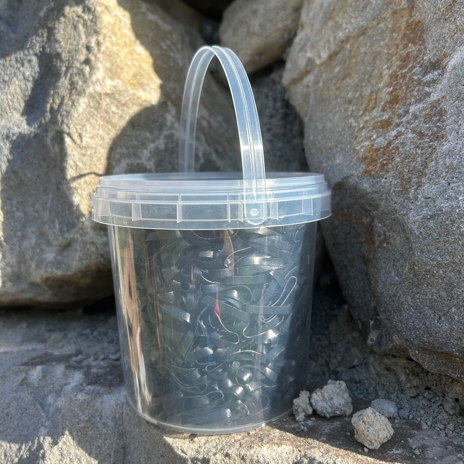 Les boîtes contiennent environ 1800 élastiques dans le seau.