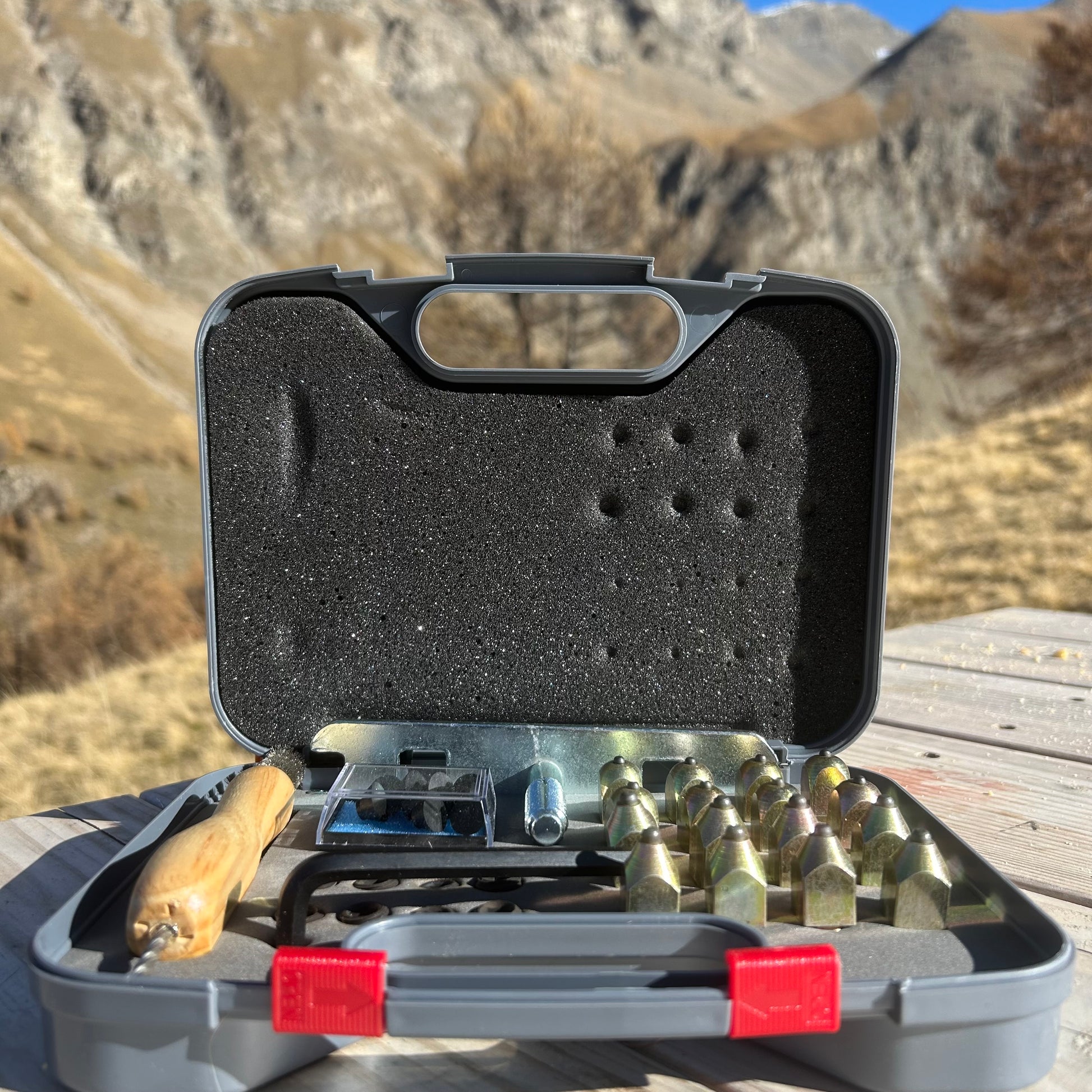Accessoire indispensable en concours, la malette à crampons Norton avec tungstène M12 comprend :