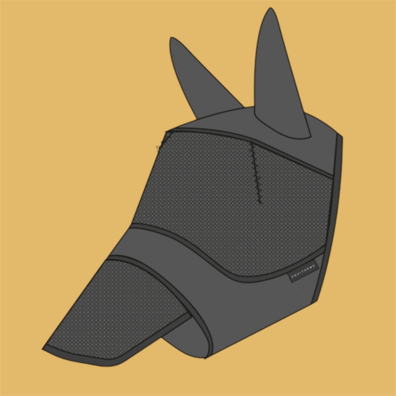 Pour une adaptation parfaite, le Masque anti-mouches anti-UV EQUITHÈME Soft + Nez est fabriqué en tissu mesh aéré monté sur une base souple en lycra, qui épouse la forme de la tête.