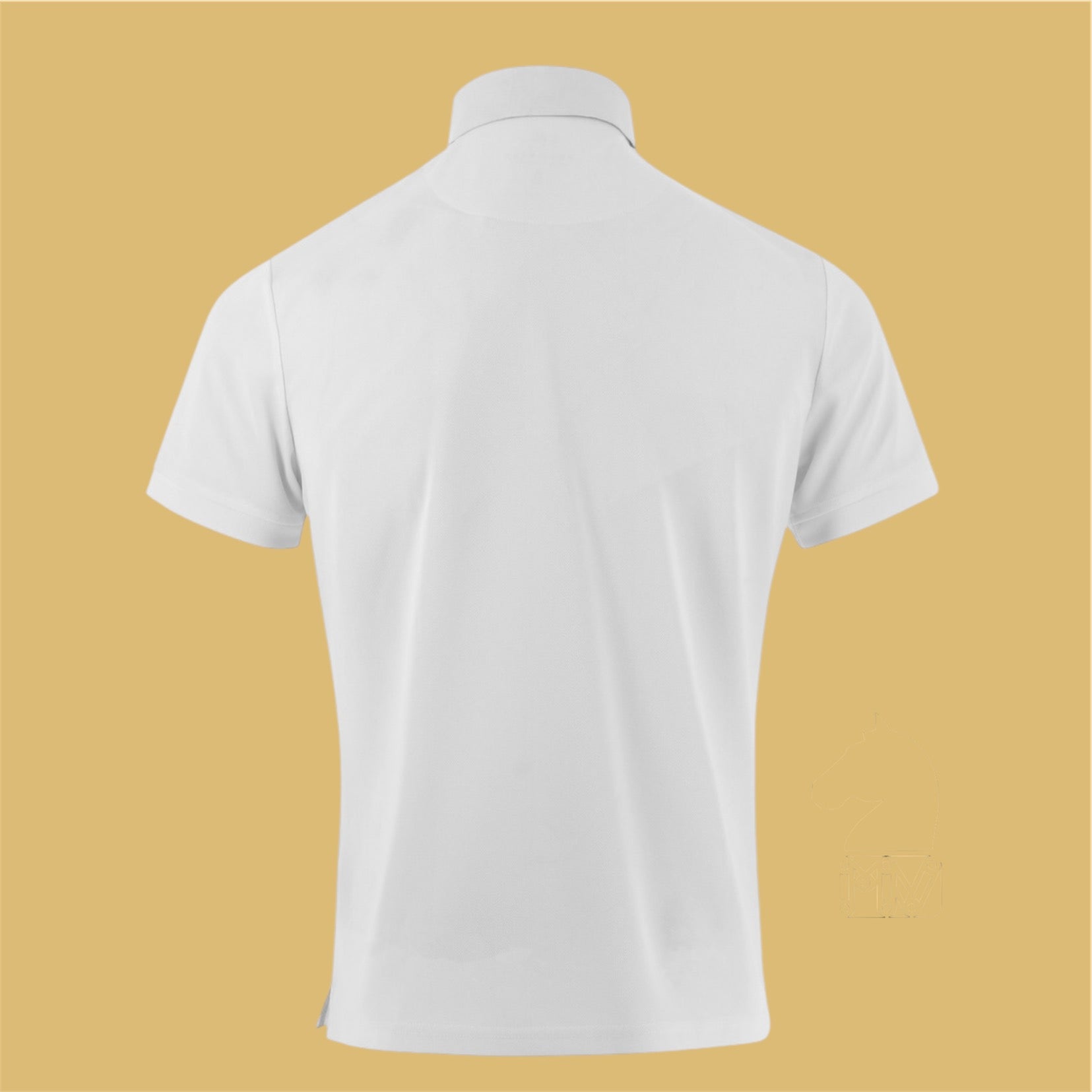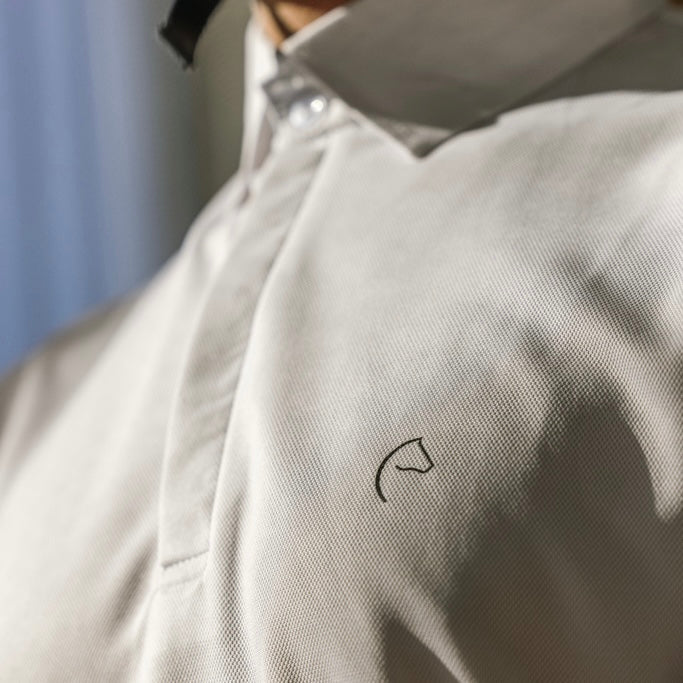 Sobre et classique, ce polo possède un col blanc, détail incontournable des tenues de concours d'équitation, fermé par un bouton principal et plusieurs petits boutons cachés sous une patte.